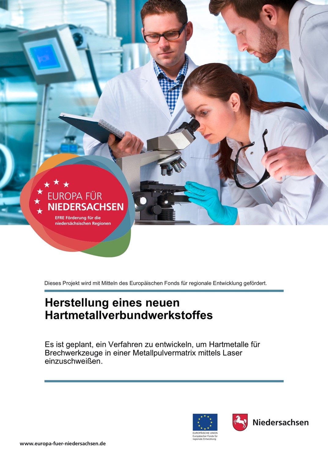 Zusammen mit Thyssen Krupp Industrial Service soll ein Verfahren entwickelt und zur Serienreife gebracht werden, um Hartmetalle für Brechwerkzeuge in einer Metallpulvermatrix mittels Laser einzuschweißen.