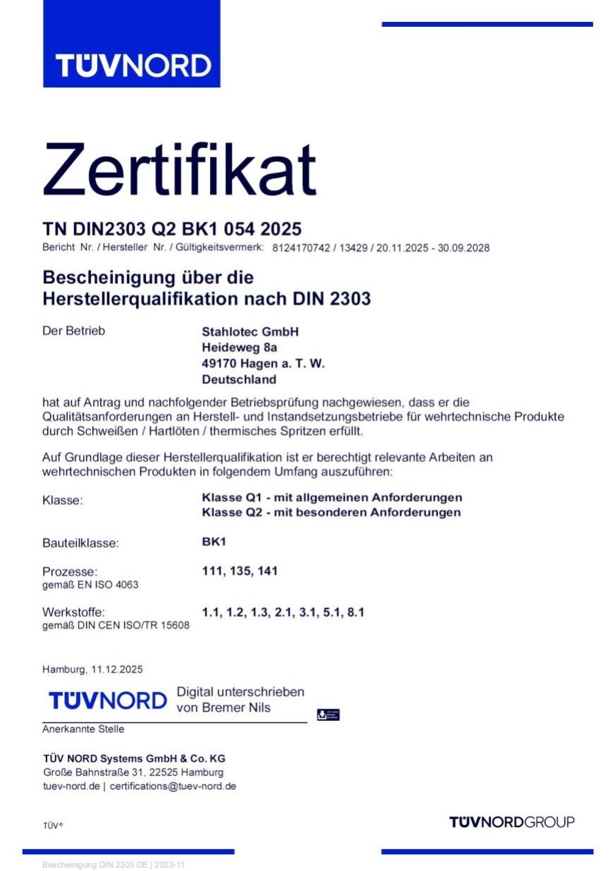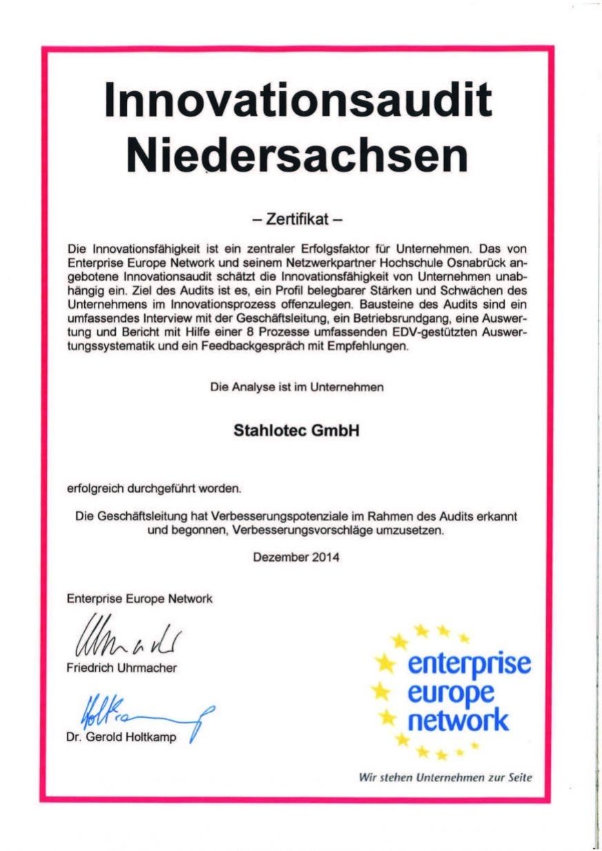 Seit der Gründung vor 20 Jahren ist stahlotec von einem Zwei-Mann-Betrieb zum zertifizierten Schweißfachbetrieb und Spezialist für die Metallfügetechnik gewachsen. Unsere Kernkompetenzen liegen in der Ver- und Bearbeitung von Edelstahl, Stahl, Aluminium und Kupfer.